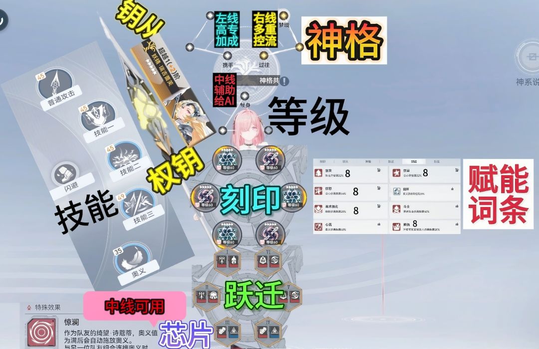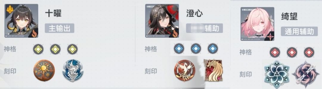 ⒈刻印搭配(刻印40级解锁自带固定词条后剩下空白需要自己赋能,40级洗对应角色神系后可搞成角色专属刻印)