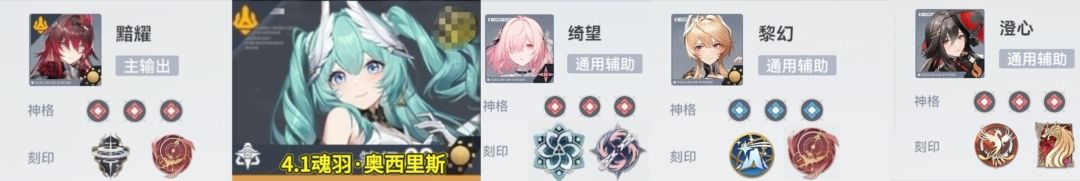 当然也可以火诗+黎幻(通用)+陵光(火辅助) 金乌+陵光+诗蔻蒂辅助(还凑合吧。)