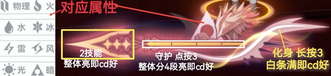 - 左边条满了点按2技能,中间条满了 点按3技能,右边条满了长按3技能。