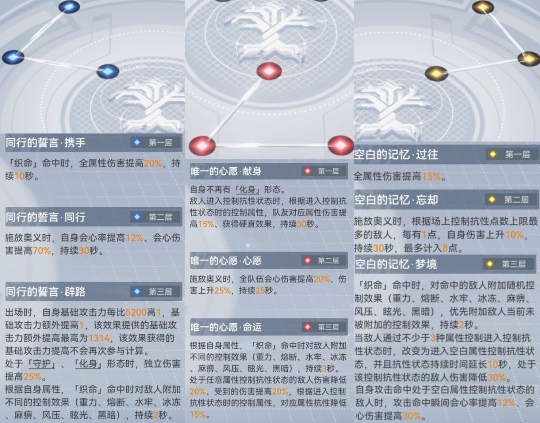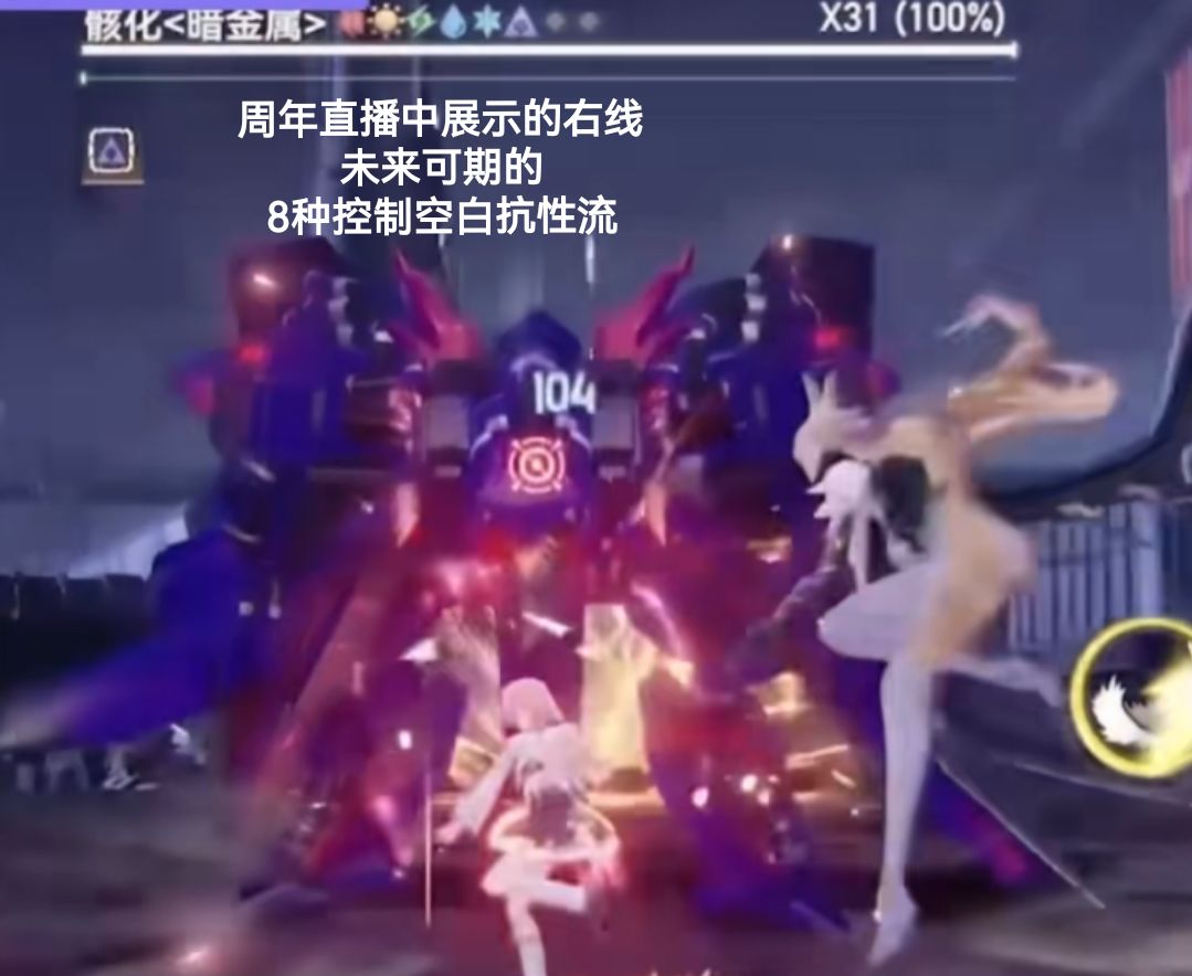 - 右线空白抗性→主打8点属性控制空白抗性流,可惜目前怪只有3点控制固定值,专武此线效果也是固定值。
