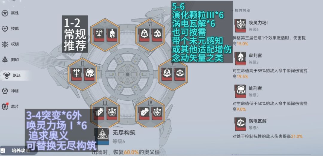 - - 3-4号位:突变磁场6+唤灵力场Ⅰ*6/无尽构筑(奥义需求)