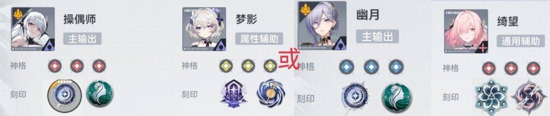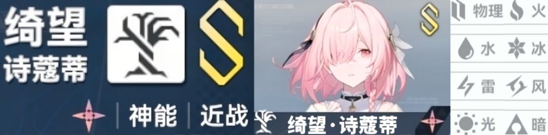 - 8属性 绮望·诗寇蒂+黎幻(同调)+陵光/对应属性辅助。