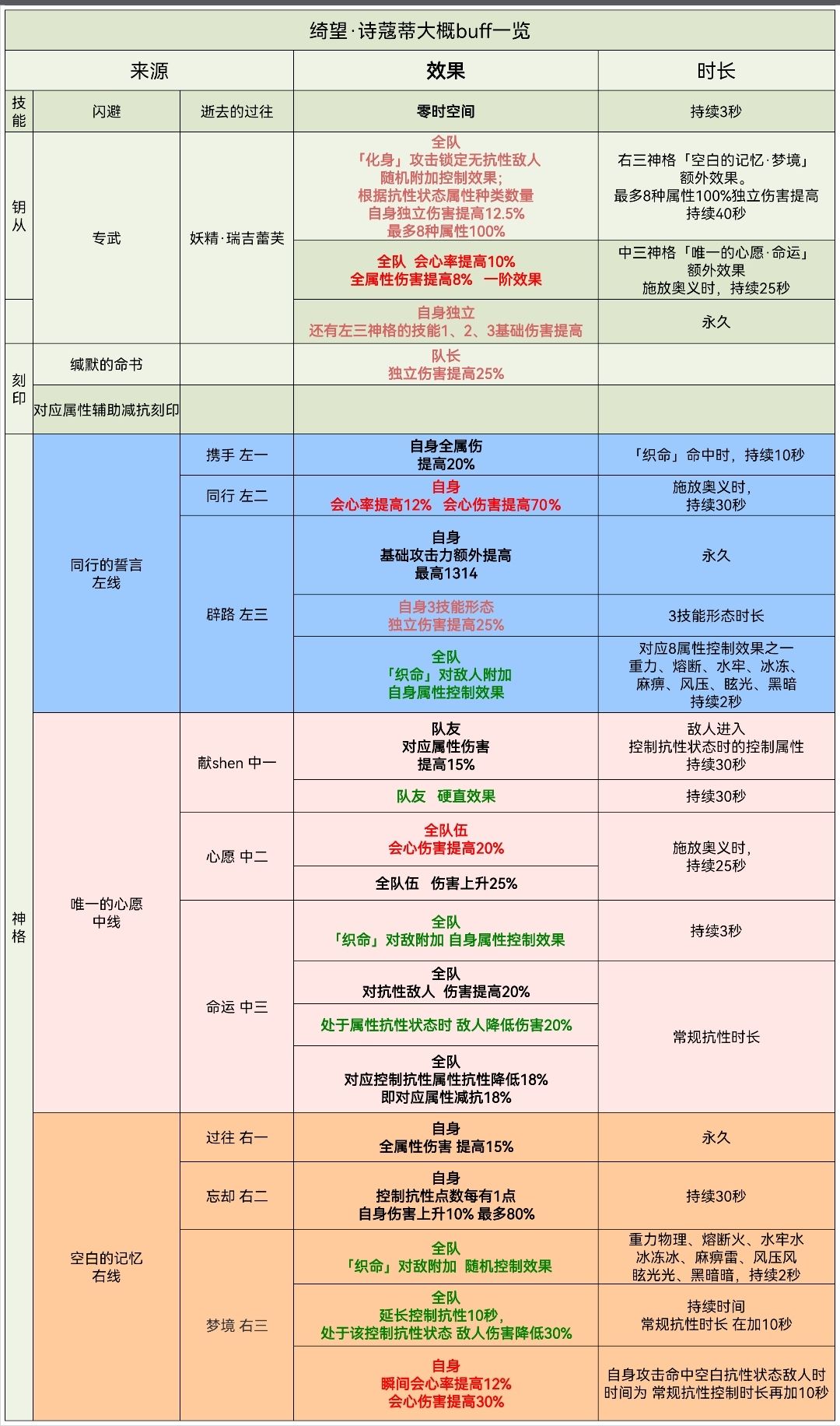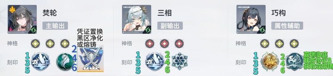 - ②输出: 诗蔻蒂输出需双辅助(通用辅助+对应属性辅)
