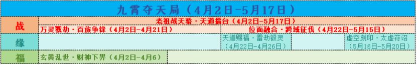 ◇天时:4月2日-4月6(每日9:00-21:00)