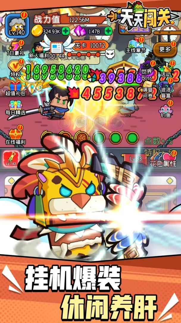 🌋游戏介绍:《天天闯关》是一款放置闯关的冒险游戏,通过架空的未来世界和各种人物的加入,以刮刮乐获取幸运属性来提升战斗力,闯过层层难关,最终身穿创世装备,站在未来世界顶端。