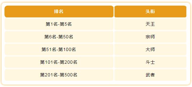 2、根据当前实时排名,对应排名的玩家将获得专属独占的头衔外显,在战中、聊天界面等场景彰显荣誉。