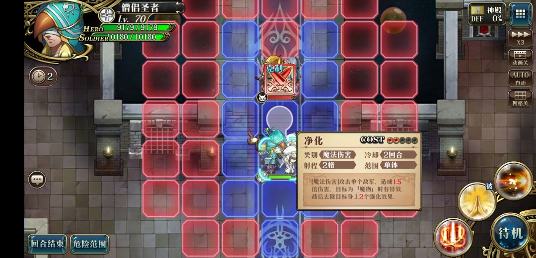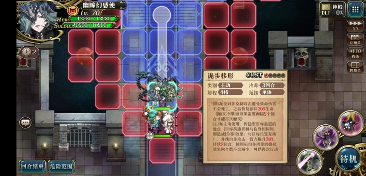 8.幻惑使用1c和枪兵换位,自己和僧兵幻惑,用3c打到枪兵一条命,回合结束后胜利