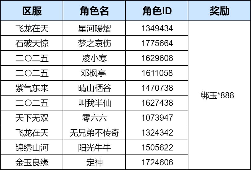 5. 活动期间到奖励发放完毕前,请不要更改角色名或区服,避免奖励发放失败。