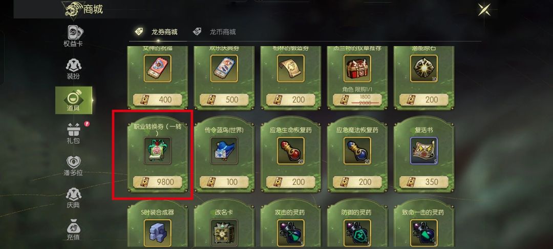 3、龙券商城新增道具【转职券】(具体使用方法请看下文)