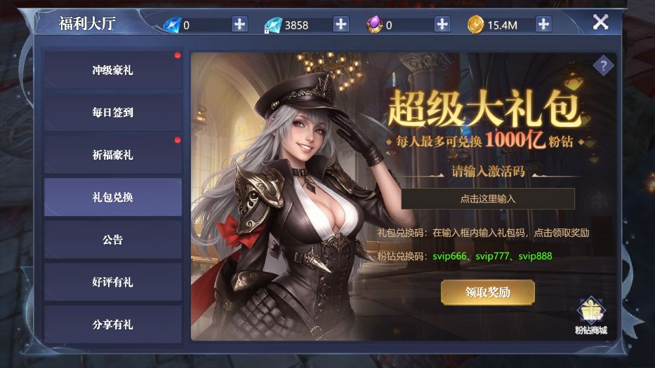 “高爆超爽”首发肯定是要扣题的,所以我们准备了1000亿的粉钻大礼包给大家,根据提示输入兑换码,就可以领取到丰厚的奖励!粉钻可以用于购买各种珍稀道具哦~
