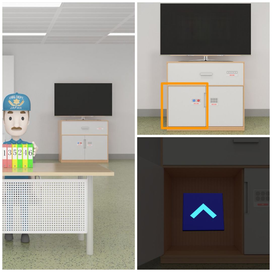 33. 打开文件夹场景的左边柜子,得到上键按钮。