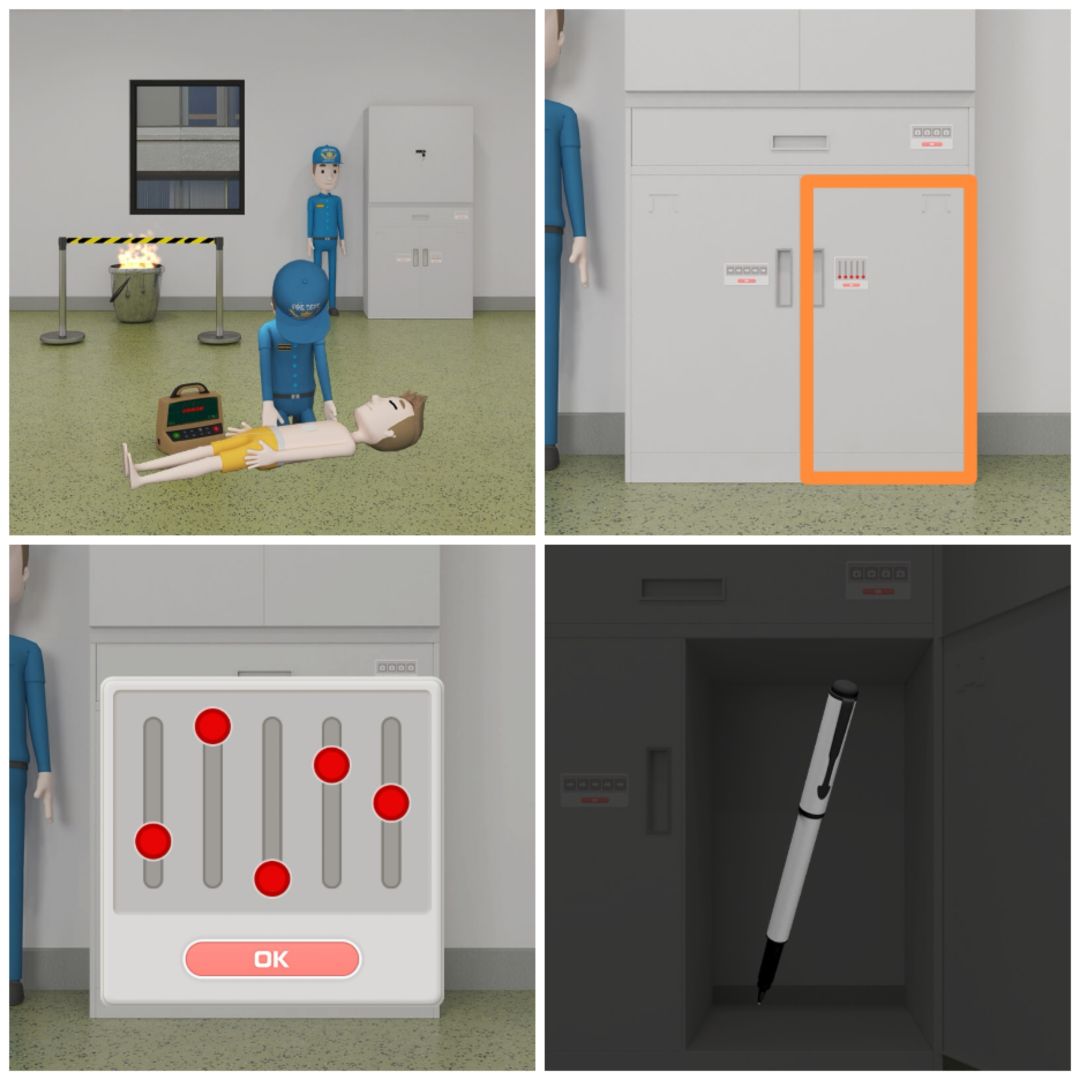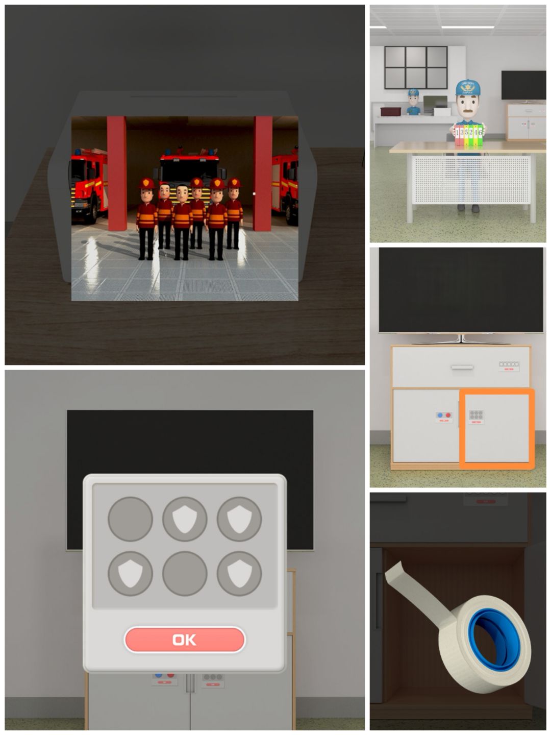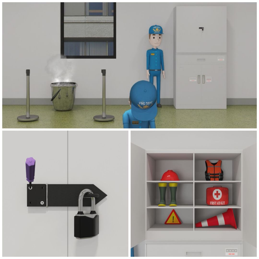 24. 使用螺丝刀,打开救援场景上锁的柜子,可以看到六个格子分别放着不同的物品(后面会用到)。