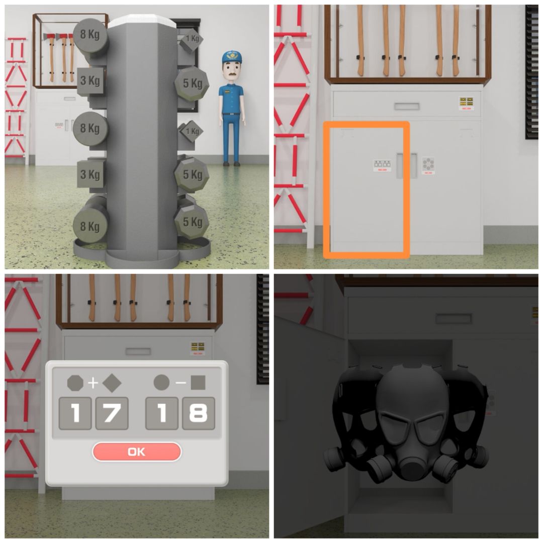 10. 查看哑铃架,然后根据斧子下方的左边柜子上的提示:
