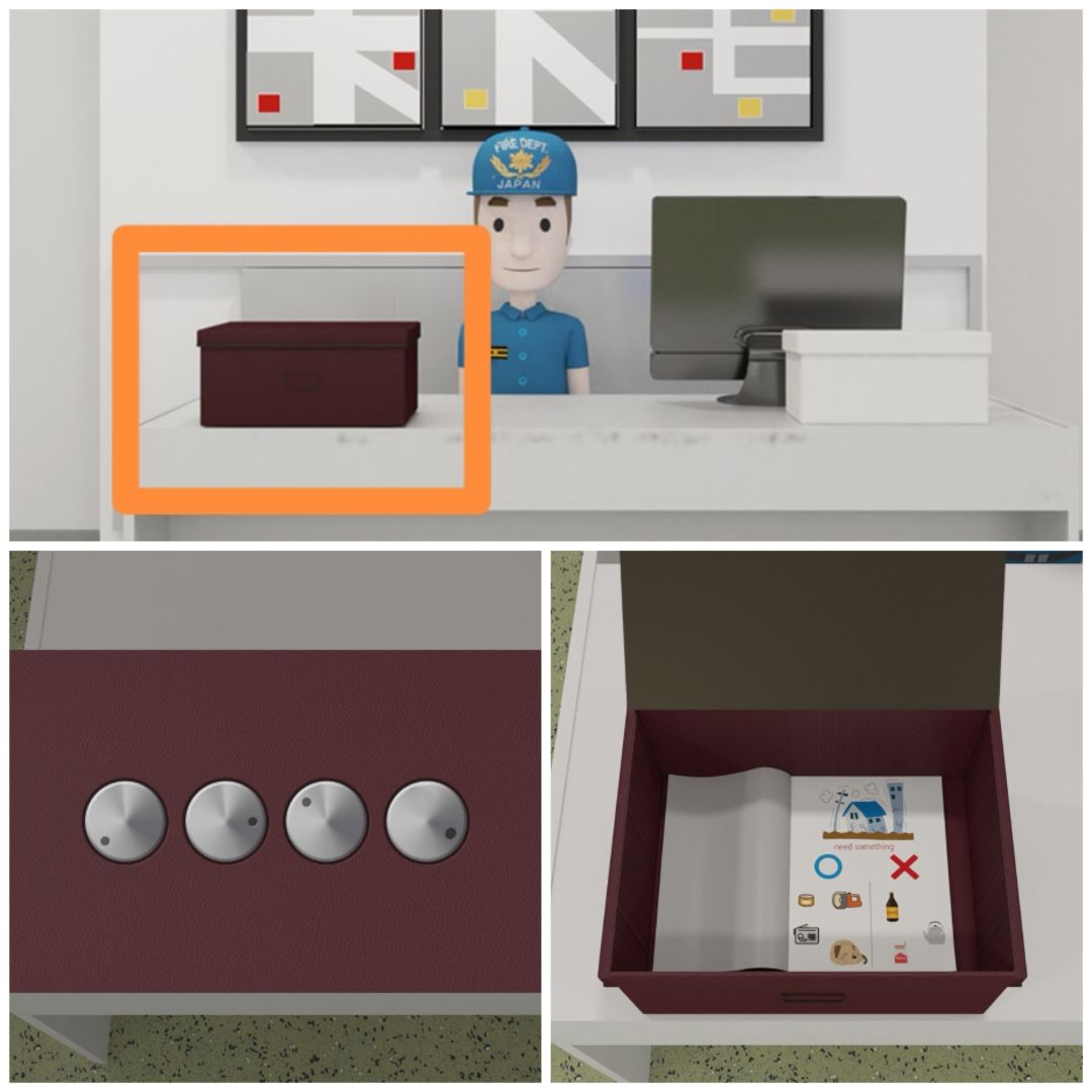 16. 根据烟的大小,可以打开打印机场景的右边柜子,得到一个救援仪器的贴片。