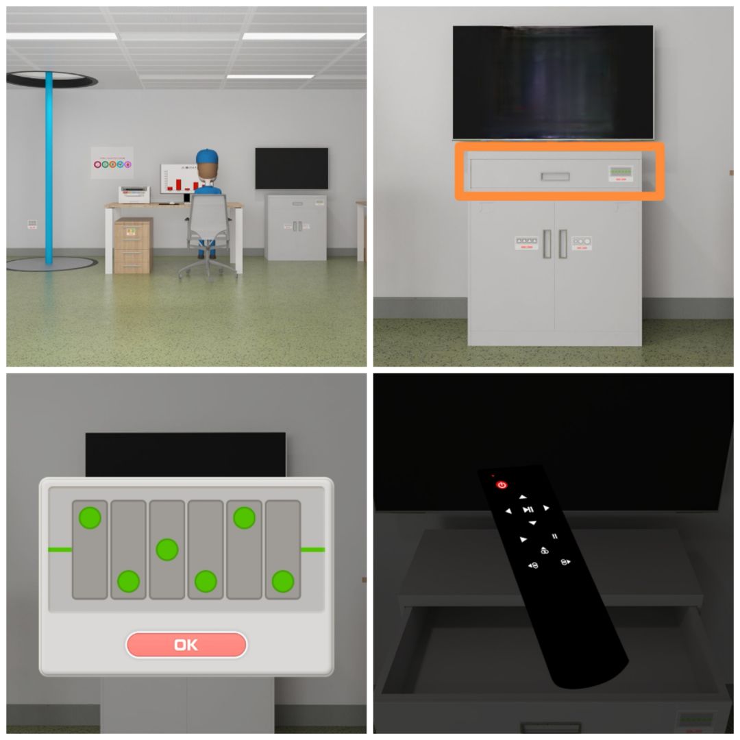 18. 根据波动(上下中下上下),可以打开打印机场景的抽屉,得到遥控器。