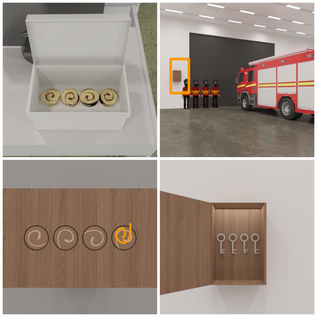 26. 根据四个轮子,可以打开监控前桌子上右边的盒子,得到提示。