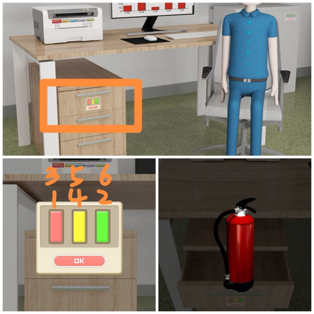 6. 根据颜色顺序依次点击可以打开打印机下方的抽屉,得到一个灭火器。