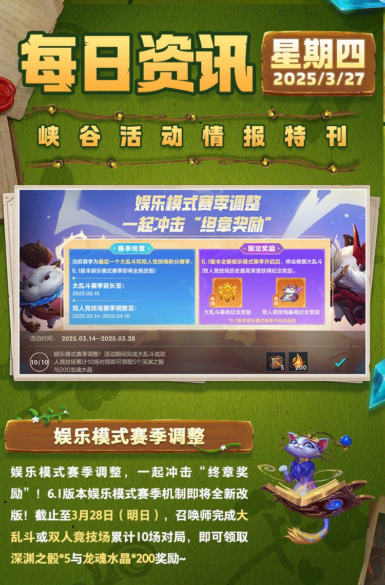 活动:娱乐模式赛季调整 一起冲击“终章奖励”