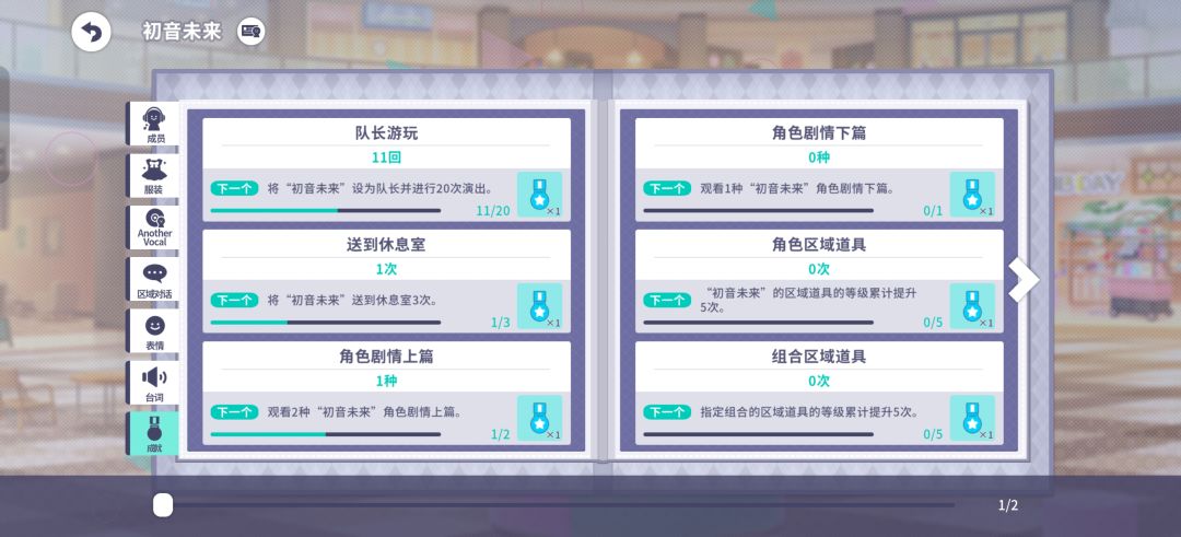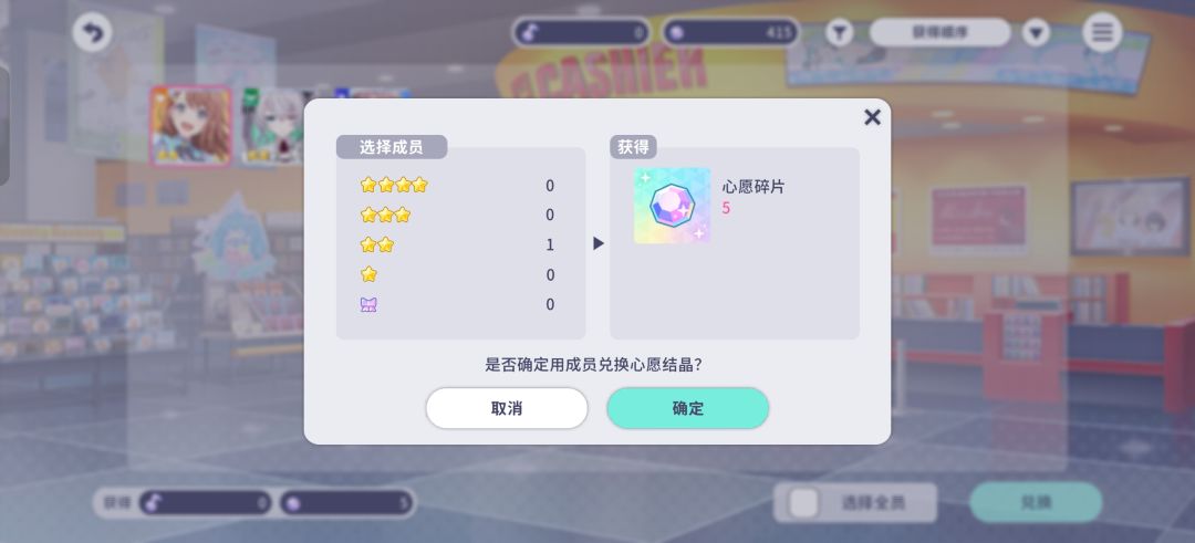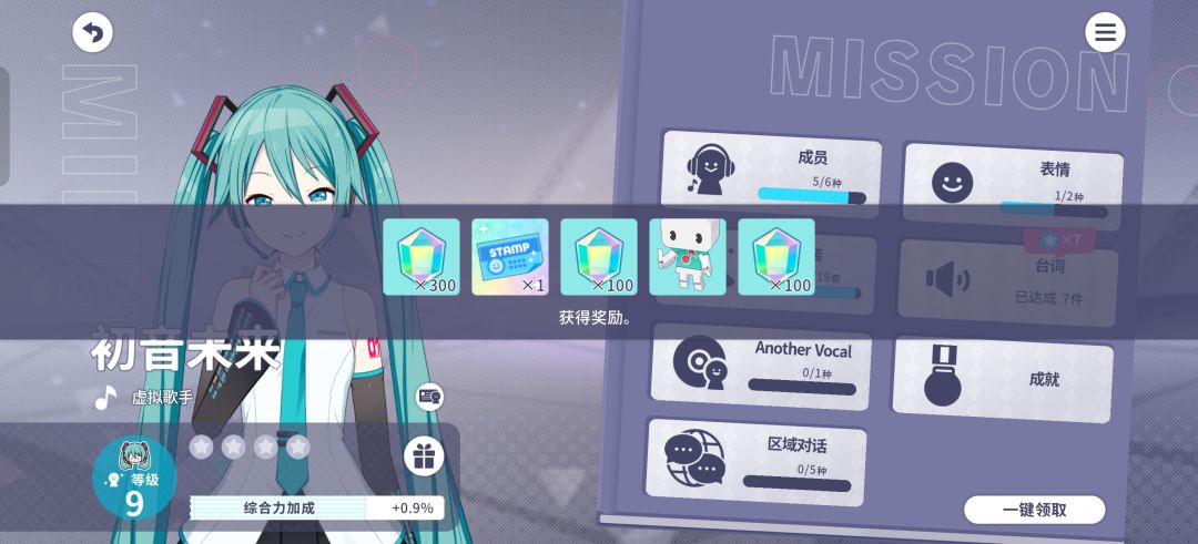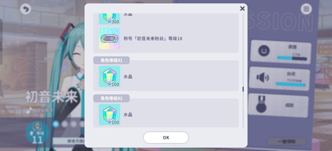 至于游戏中的另一部分养成是收集成员表情以及各种服装,我们可以将它理解为常规游戏中的好感度系统,收集他们可以获得稀有的音乐卡和更多的水晶奖励。而升级其等级可以获得综合力加成。
