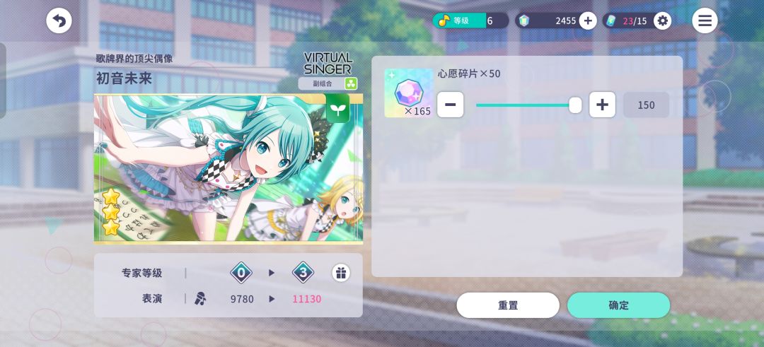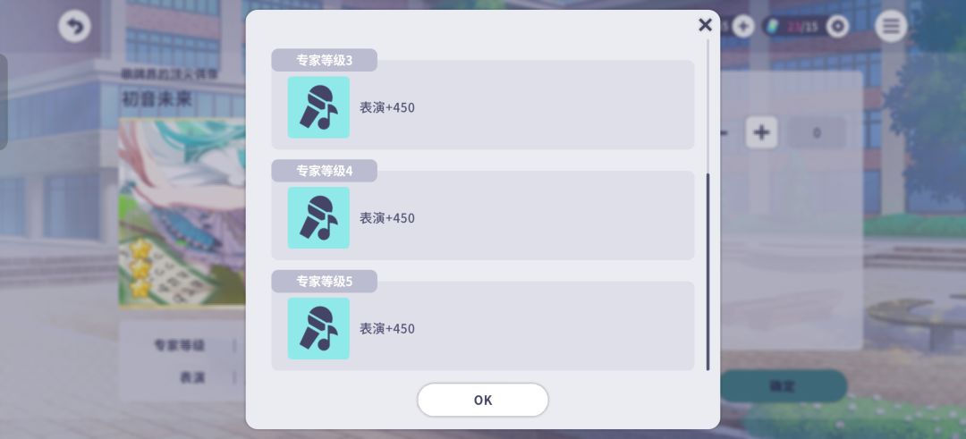 游戏中的练习养成方面需要玩家利用一定的乐谱对其角色进行一个整体的等级升级。可以理解为类似常规游戏单纯的角色等级升级。