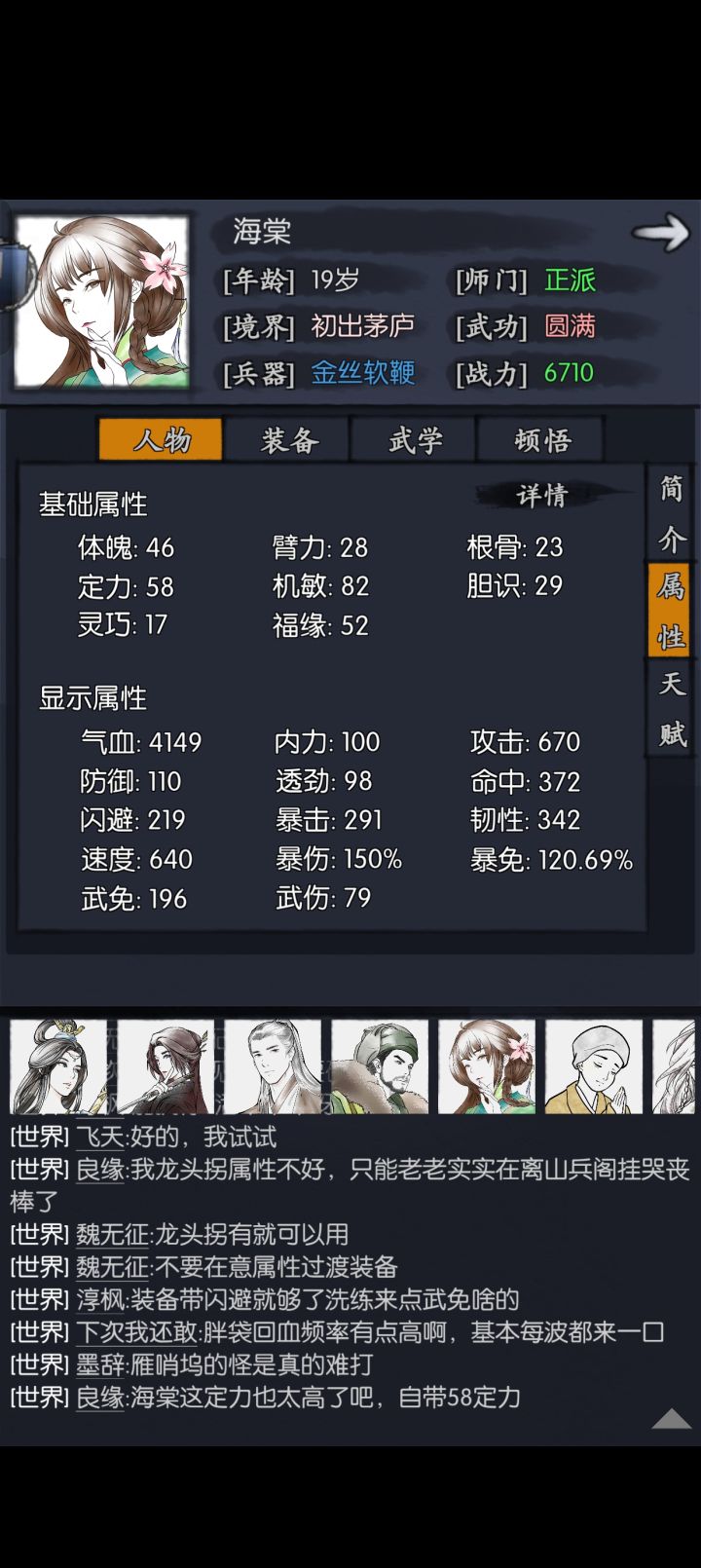 这自带58定力,离大谱。在考虑是不是给她穿高高韧性武免装备,属性洗定力武免根骨算了