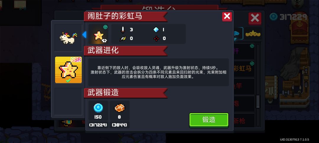 闹肚子的彩虹马——说实话,这个武器进化感觉有点符合主题,但是实际强度又很难评价。