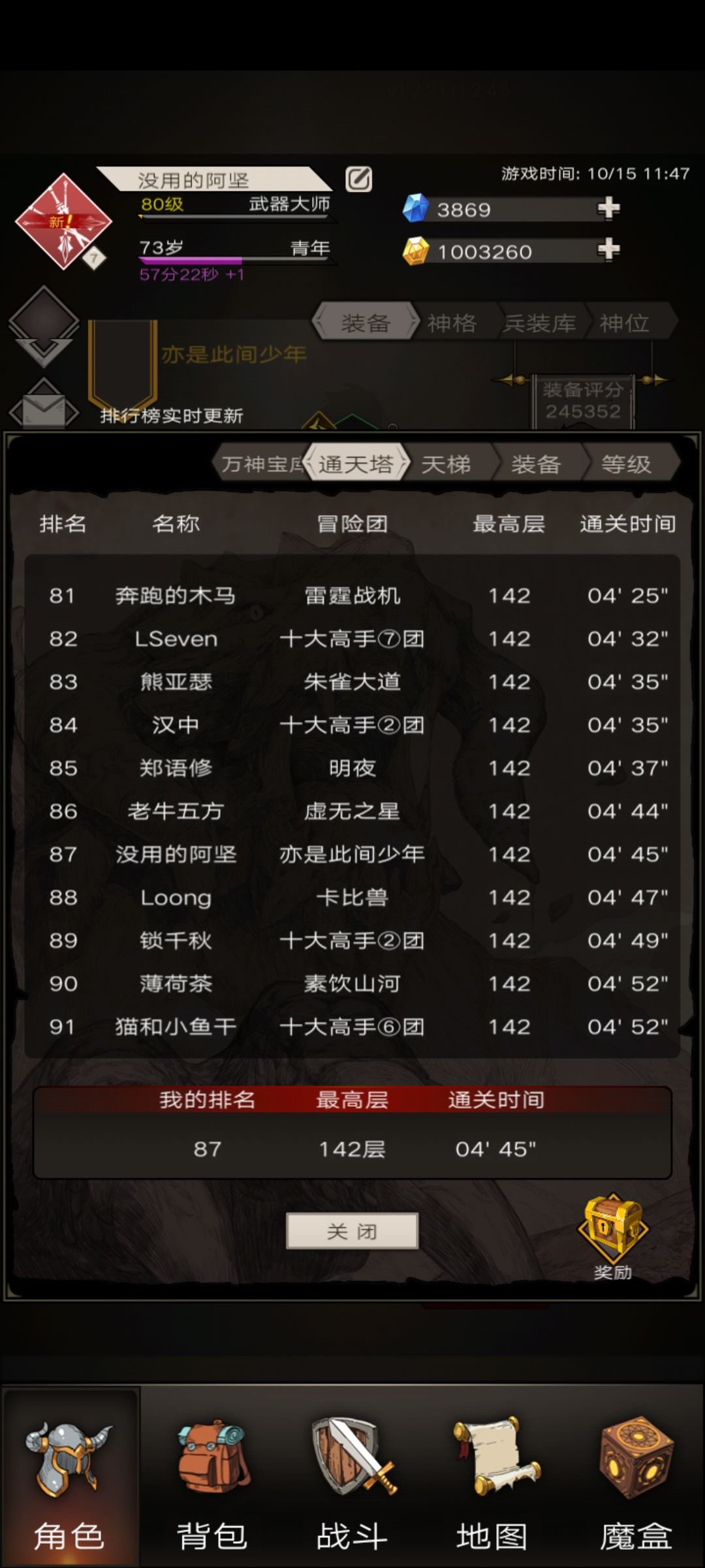 三卡玩家不容易,今天通过铭刻把属性微调了一下,过138塔了。发帖留念。