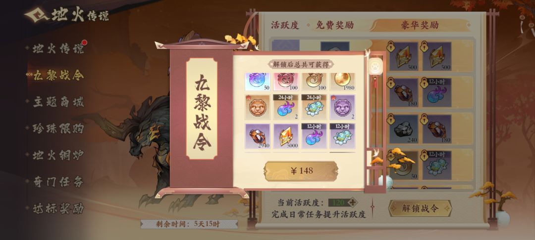 首先这个活动一共要12000(120抽)的地火精元才能拿下保底《图一》,然后因为这个活动的达标拿满需要480抽《图二》,也就是4个保底,所以平民直接无视,拿下一个保底就行。