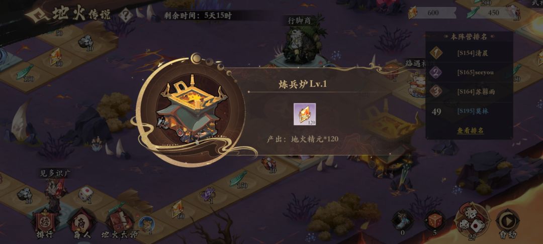 然后简单讲一下这个地火精元怎么获得,就是个简易的类大富翁投骰子的活动,地上有一些道具,和大富翁货币以及最重要的地火精元。