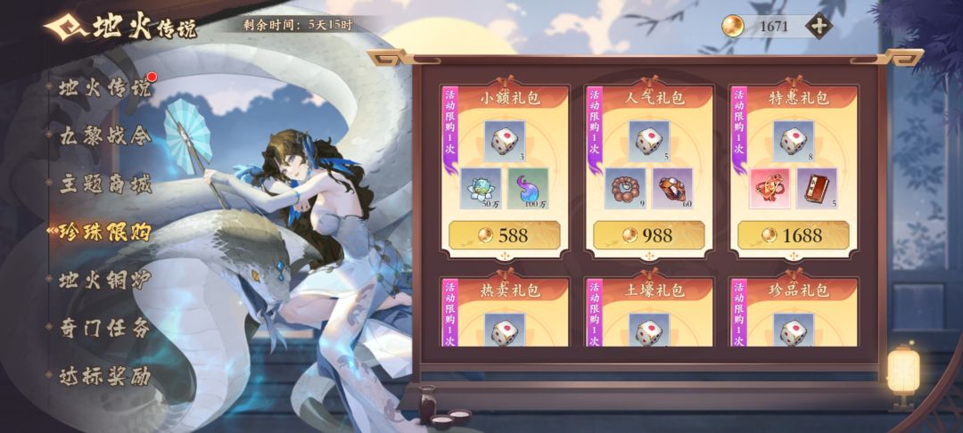 首先这是个抽图腾的活动,然后因为道具是不保留的,所以要么直接拿下保底,要么不花珍珠