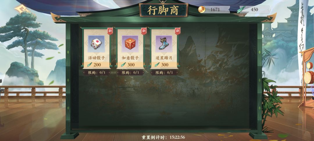 接着是商店,地图上那个刀币一样的东西就是大富翁的货币,然后商店里的货你经过《图三》行脚商就会进货《图五》,买普通骰子和自选骰子就行,优先自选,走发光的地。