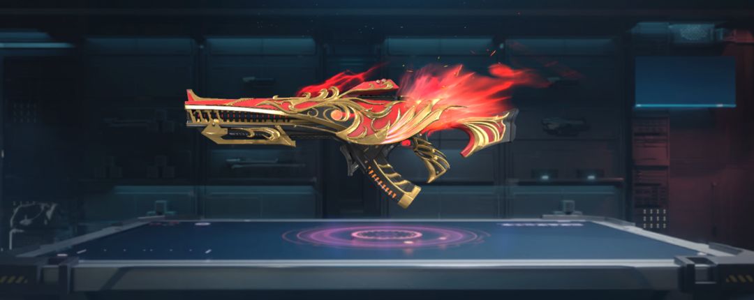 同系列武器皮肤「银色旋涡·朱焰羽」以炽烈红焰为主调,枪身雕刻着复杂而精美的纹路,如火焰舞动般流畅灵动。整体线条锐利而富有动感,红色的火焰光效更是仿佛随时都会燃烧,将战意点燃至巅峰!