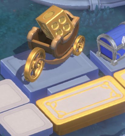 有【普通骰子】就有,【金骰子】(1-6步数任意选)什么时候用呢,看到有【魔镜】就用了,因为里面有扭蛋金币。【大奖包含莱昂的典藏皮肤、一套时装【特效减控免伤】、新魔偶】