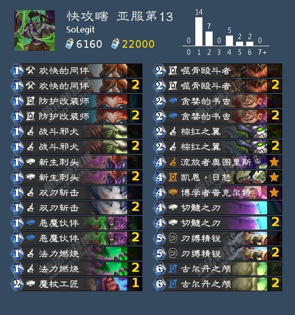 而考虑到现在的奇迹法已经不带火印火妖,环境里也有祈求贼、奥秘贼来掩护,快攻贼在现在的天梯上也可以作为反制法、瞎二位霸主的反手卡组出现。