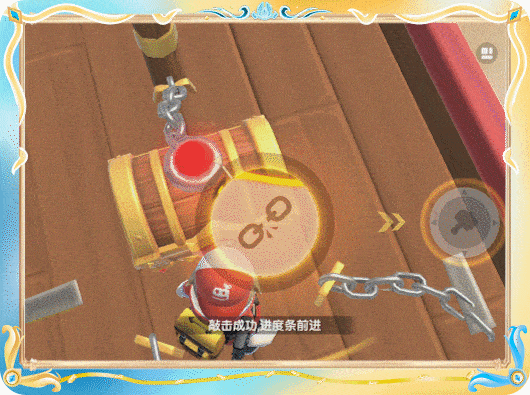肠肠需要对3条铁链进行解锁操作,在指针移动到黄色区域后,点击右侧的锤子达到一定次数后即可解锁该条铁链,解锁全部3条铁链后即可开启豪华宝箱!