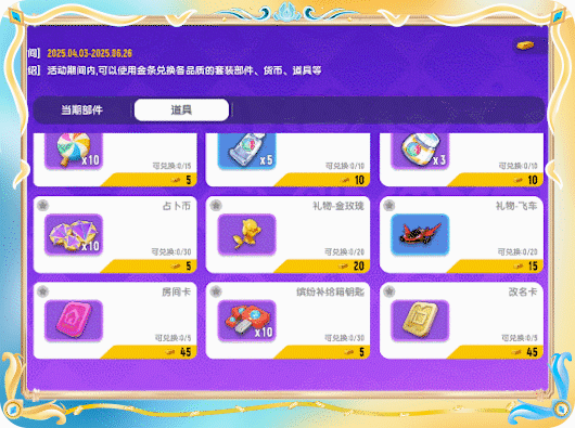 肠肠还可以用金条来兑换其他货币及道具,如棒棒糖、占卜币、缤纷补给箱钥匙、初级染色剂、高级染色剂、金玫瑰等多重种类的货币及道具