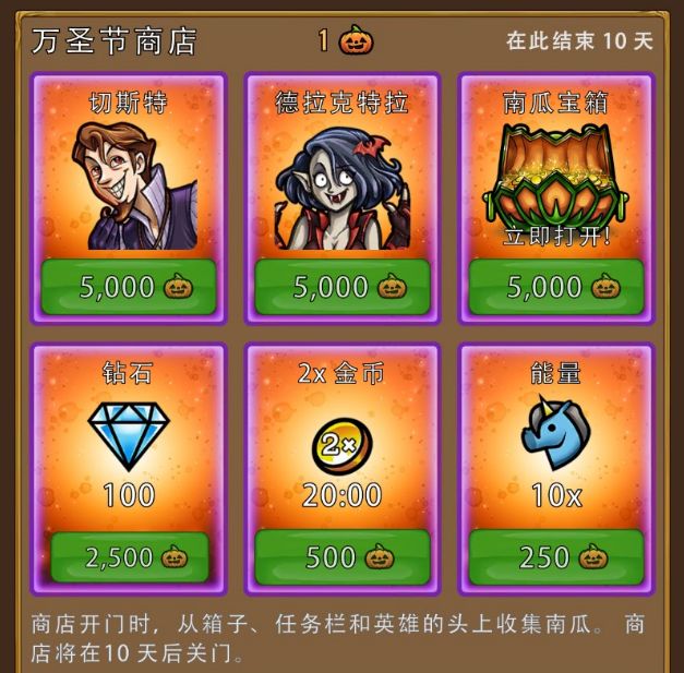 收集的南瓜可以在万圣节商店兑换丰厚奖励,更有全新队员等你来领
