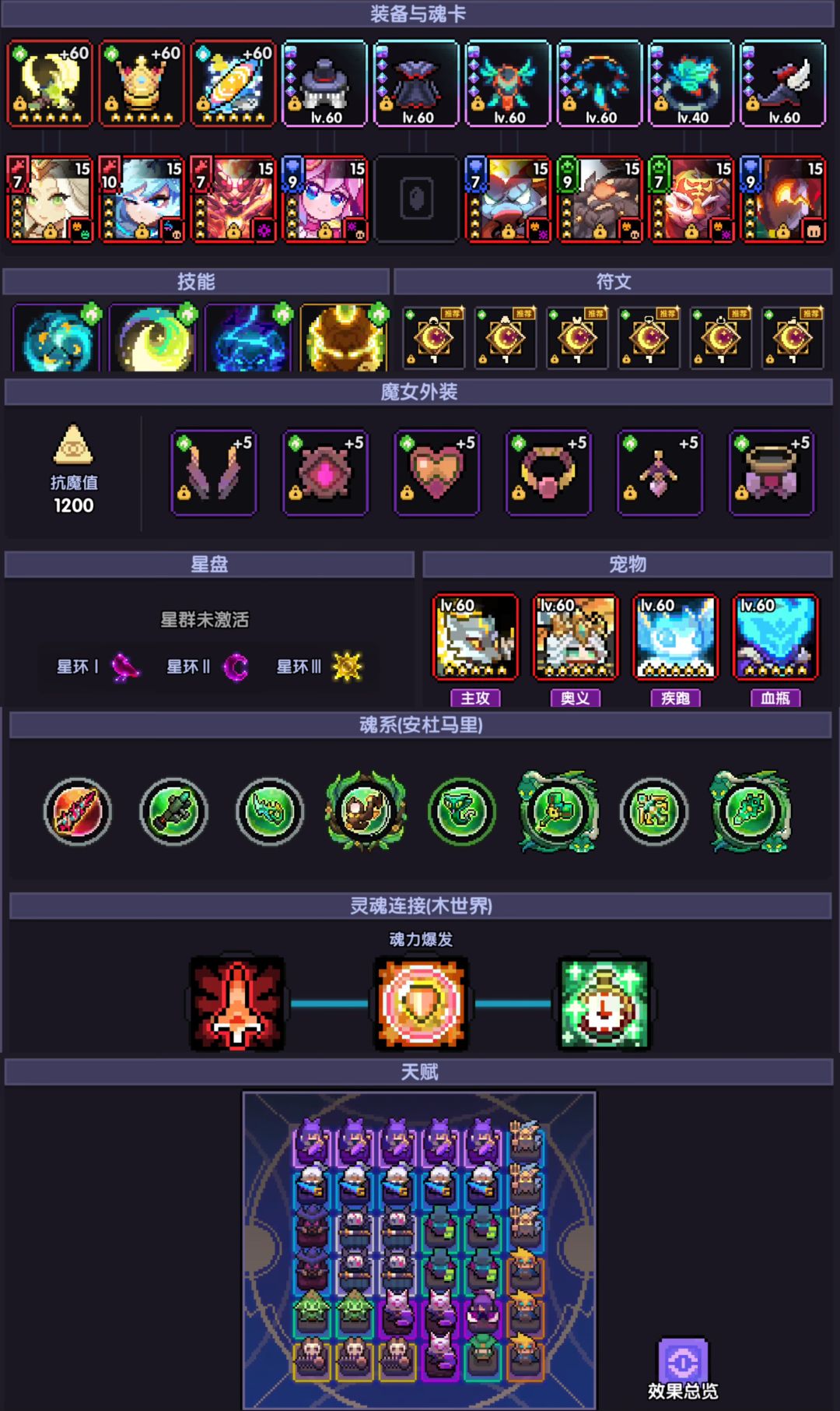 核心魂珠都选择大荒海外,其他魂珠选择小莫游侠/法师/忍者、5安度、卡茜牧师/法师/忍者补足面板属性。