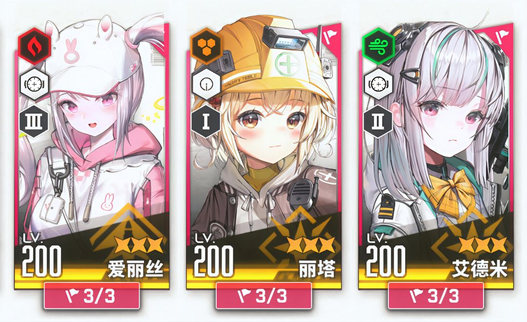 4. 所以大致的配队思路就有了:个人建议,在Ⅰ、Ⅱ、Ⅲ爆裂段数标记都有的前提下,两火力,两辅助,一防御