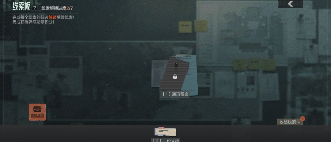 将线索放于线索板上即可解锁相应的任务,完成每个线索的任务即可解锁后续线索以及获得弹痕勋章积分!