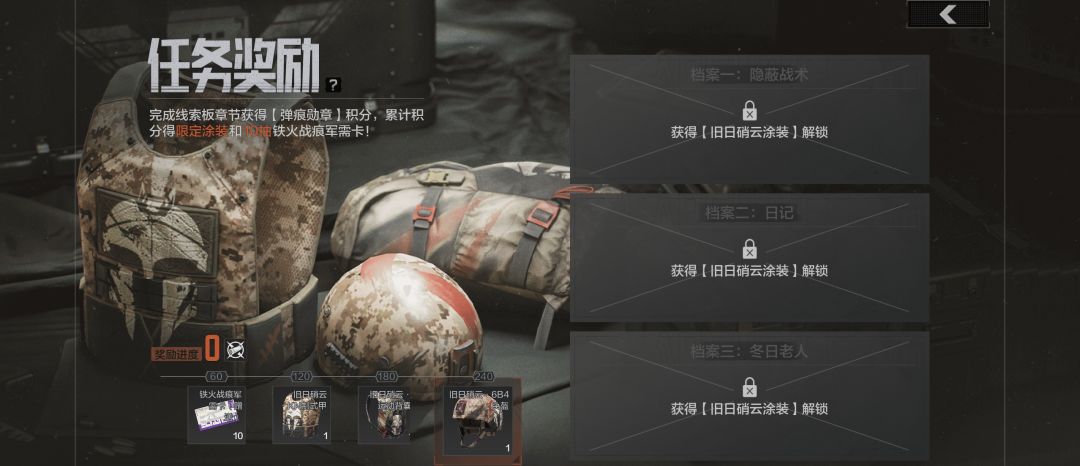 完成任务获取的弹痕勋章积分,可用于换取“铁火战痕”军需卡×10张,以及KN制式防弹衣涂装、运动背囊涂装、6B4型头盔涂装专属外观奖励!