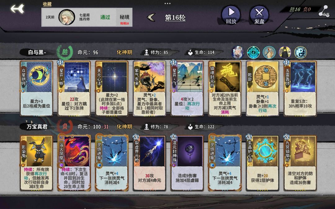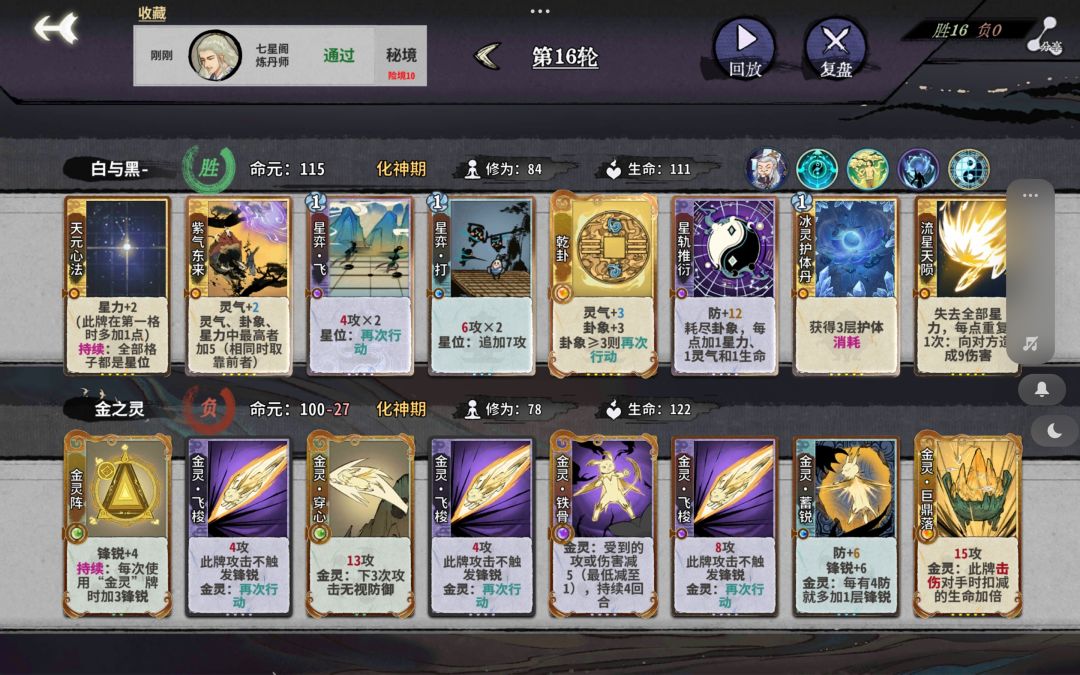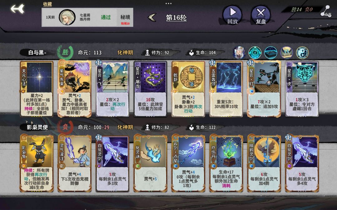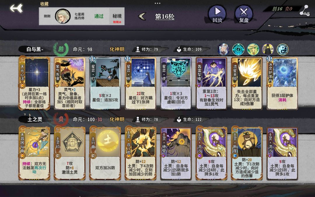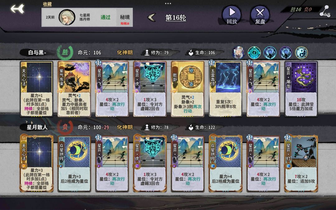 第5轮直接上金丹,优先拿观星或修为仙命,从这时开始到化神基本都不用d牌,伤害够了。