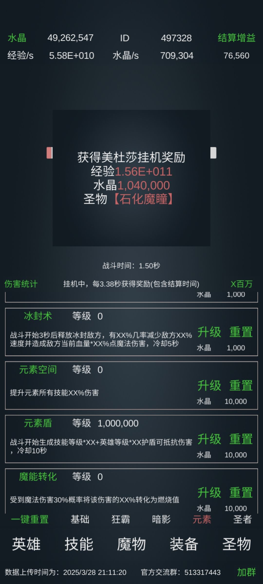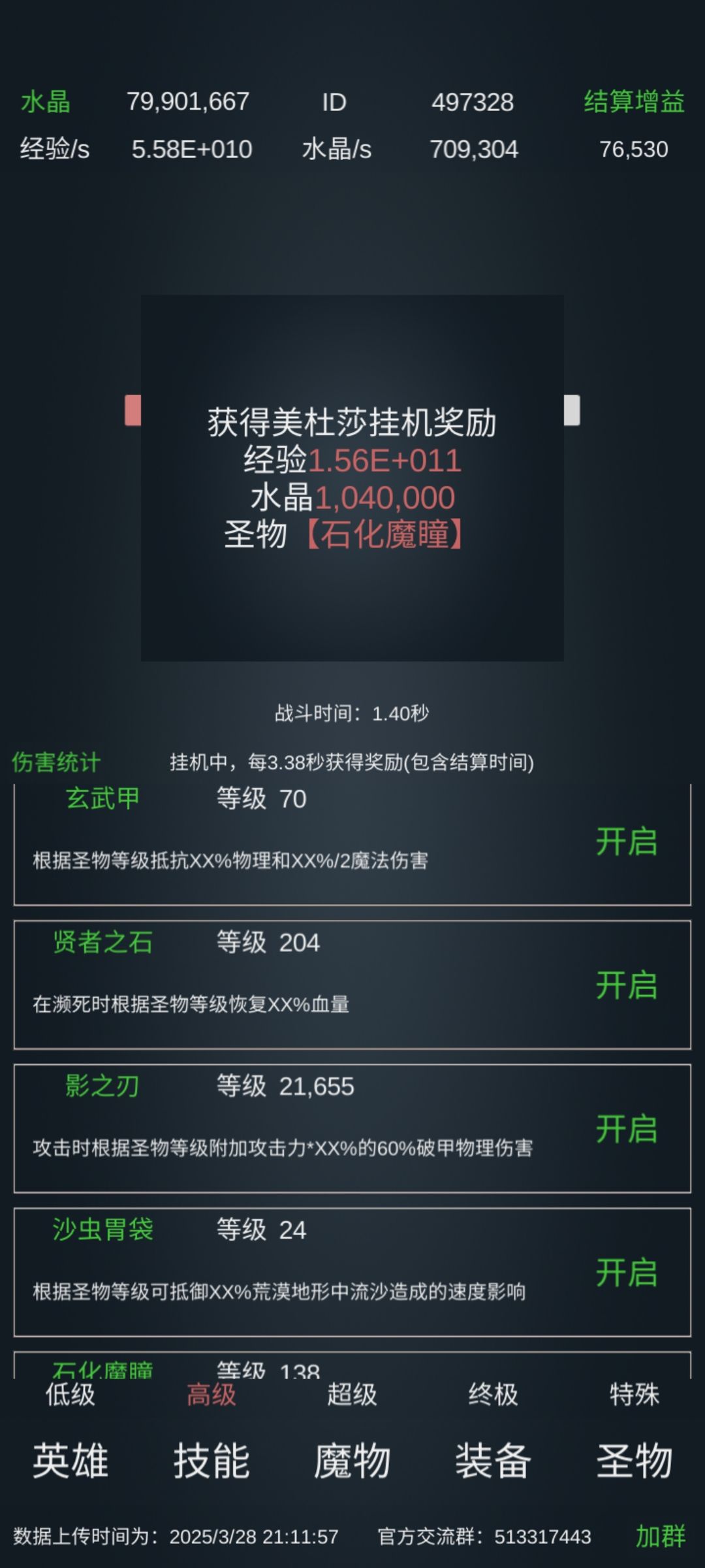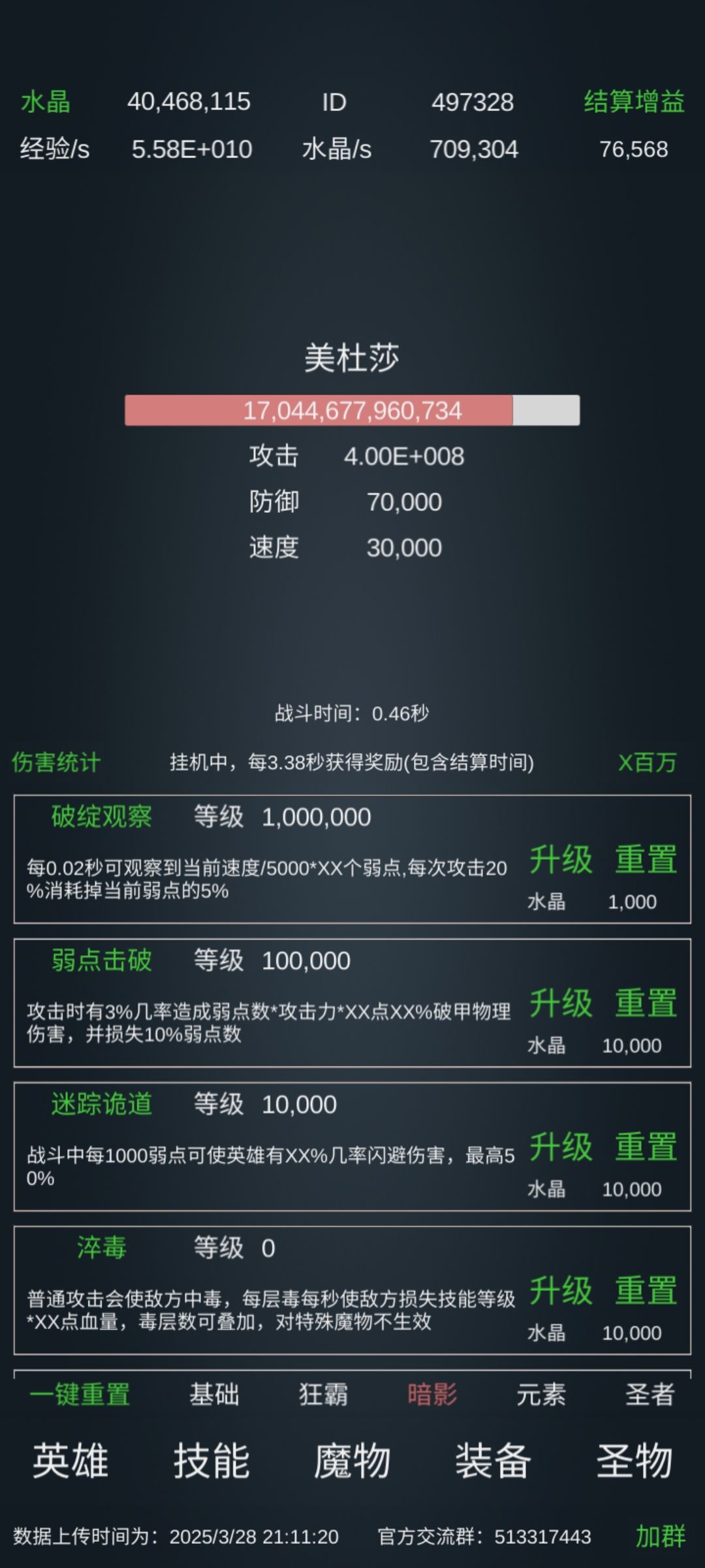 这俩怪属性差距不大,完全可以一起打,310多万级过的魔影刺客,挂了10来分钟过的美杜莎,美杜莎这个配置要点运气,如果看到血量有机会剩下一小截,那可以等等,此间产出的钻石都投入弱点暴露。