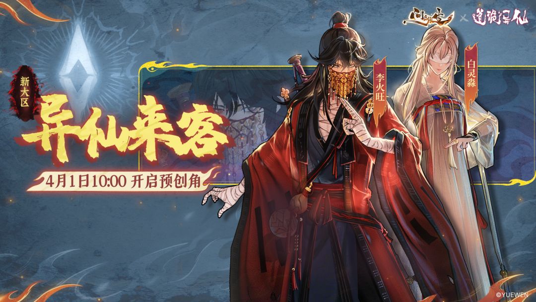 联动专属新大区“异仙来客”4月1日开放预创角,问问为仙长们盘点了联动新大区可能会存在的热门ID:李火旺、白灵淼、诸葛渊、红中老大、骰子、福生天、丹阳子、北风……4月4日正式开服极速建宗,白玉京、袄景教、坐忘道或成抢手宗门名,是谁的道诡DNA蠢蠢欲动了?