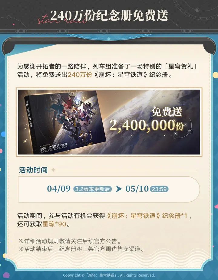 《崩铁》官宣,将免费送240万份纪念册!!!