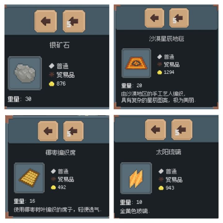 克里斯塔拉买银矿往德拉卖,然后去沙漠古尔吉买太阳结晶,伊多拉买沙漠毯子和编织毯,一路卖回克里斯塔。