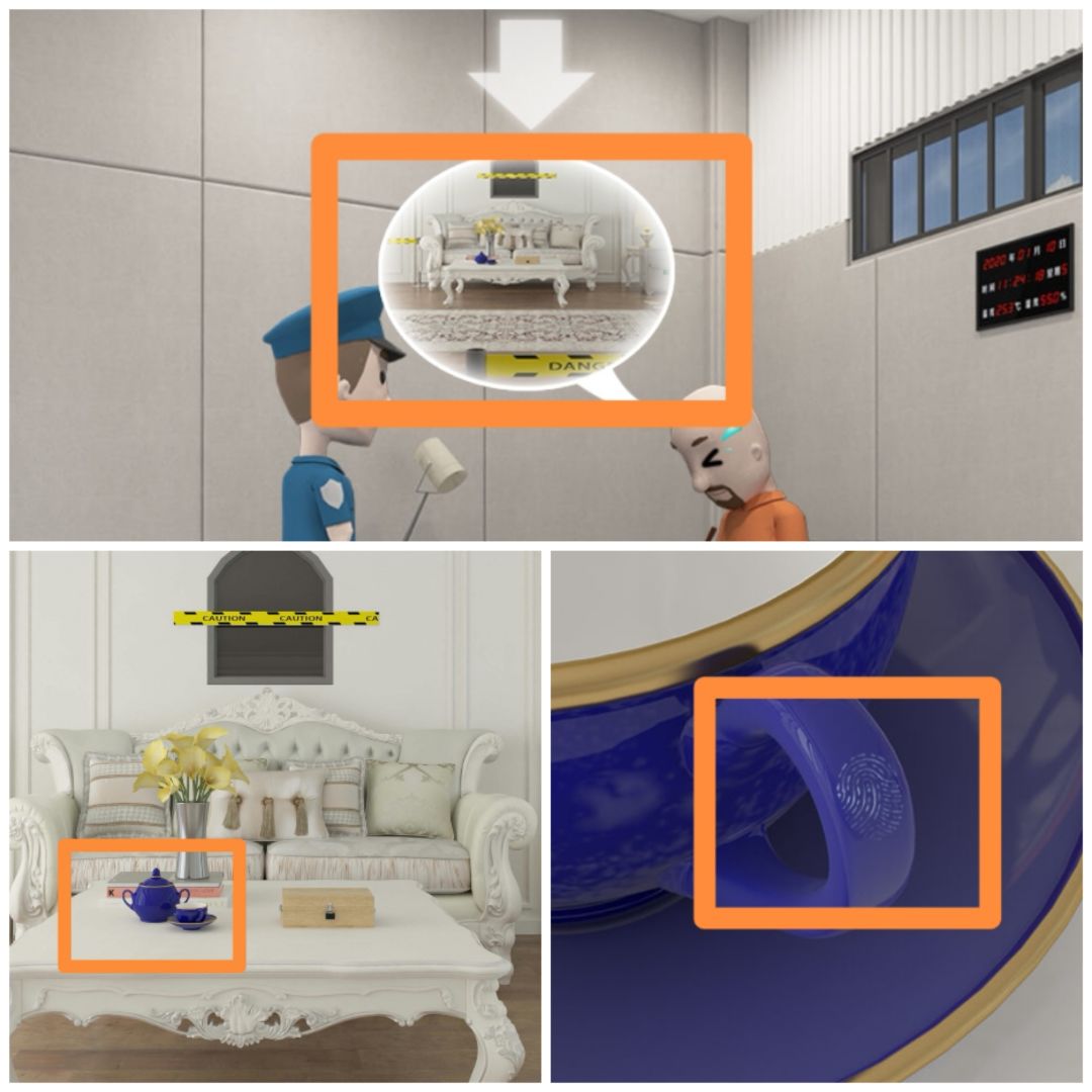 18. 进入调查现场,点击茶杯,用胶带提取杯柄上的指纹。