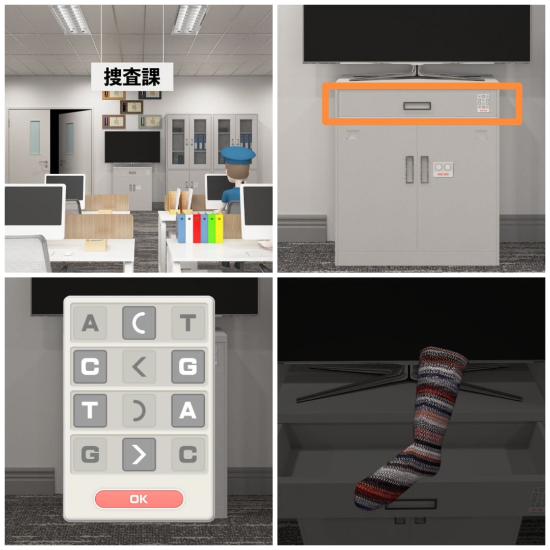 24. 这张图可以打开搜查课场景电视下的抽屉(颜色对应字母,然后看中间的符号),得到一只袜子。