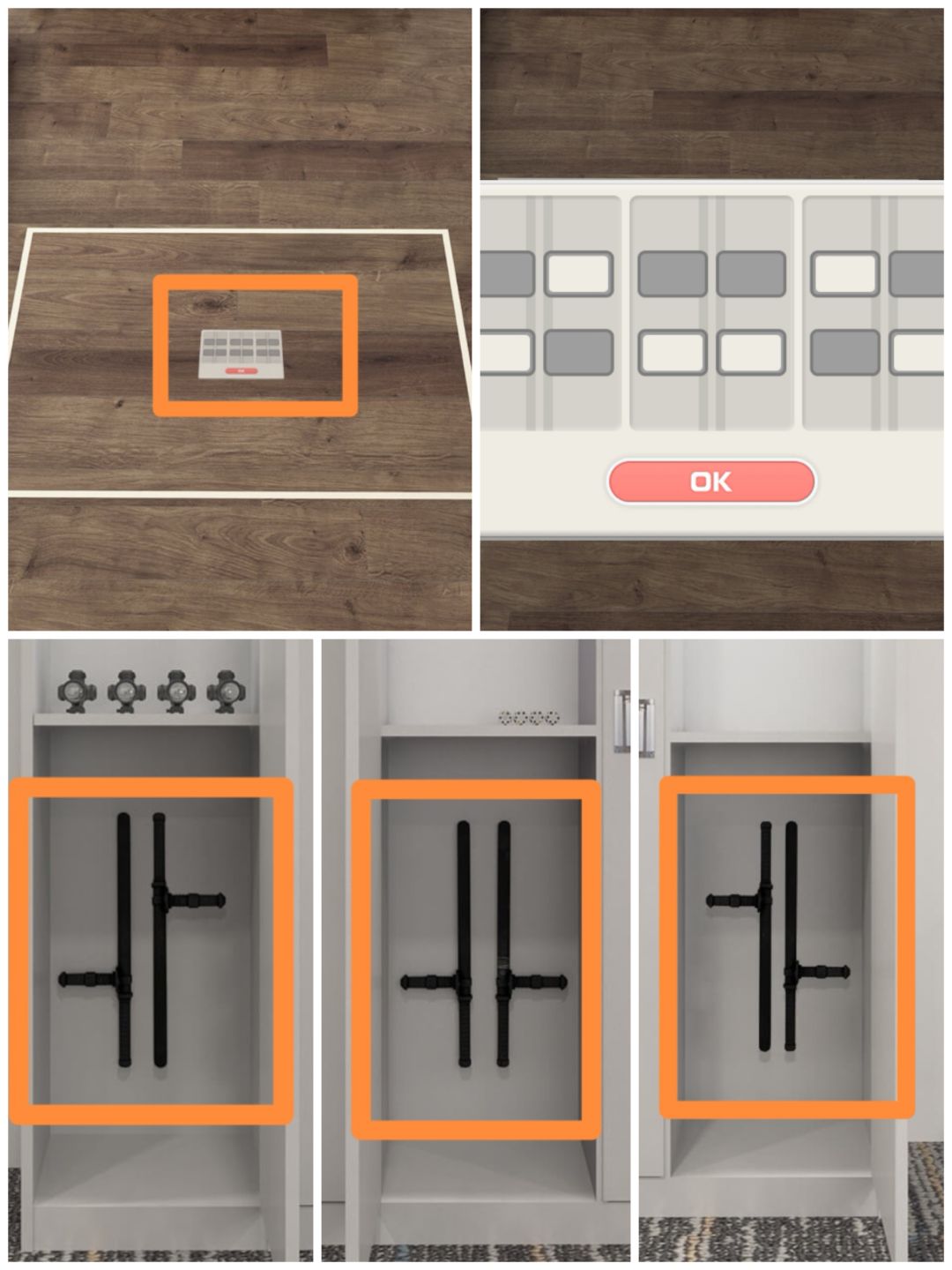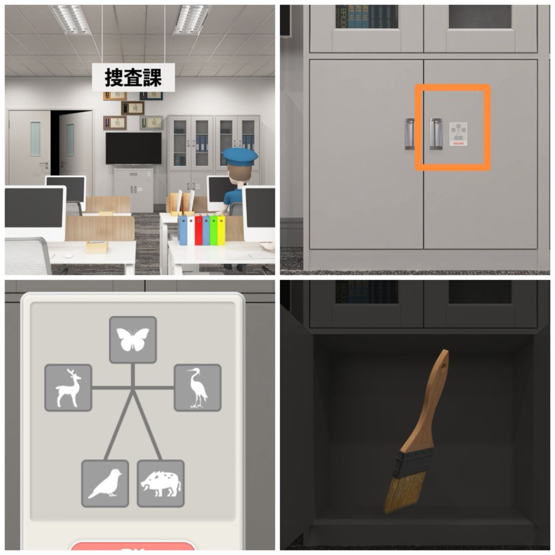 21. 查看地上的各个部位对应的图,可以打开搜查课场景文件柜下的柜门,得到一把刷子。
