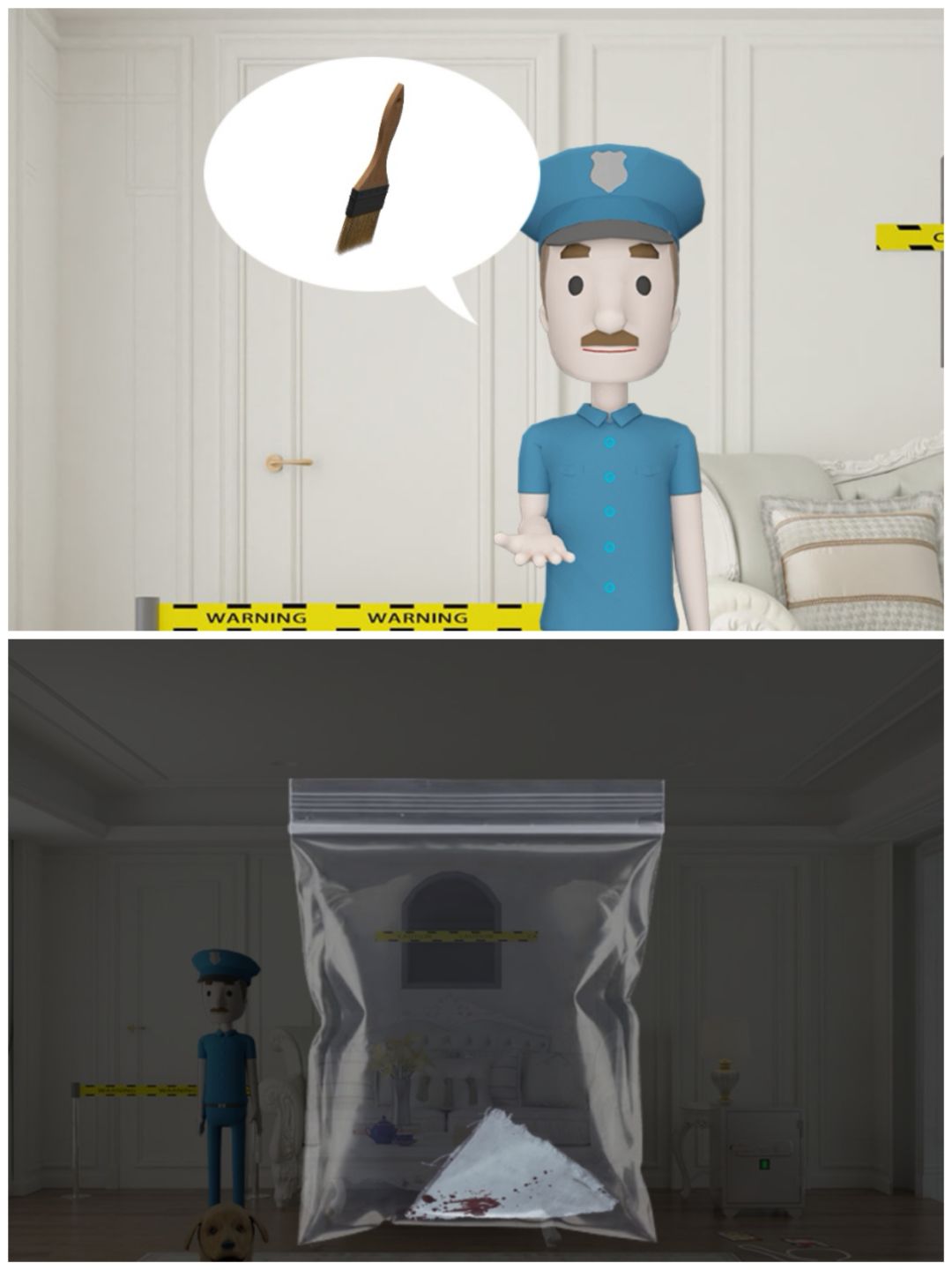 22. 把刷子给调查现场的人,得到一袋证物。
